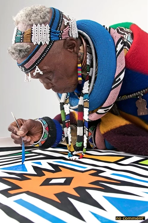 Je suis profondément attachée à mon héritage ndebele et fidèle aux principes du dessin et des formes traditionnelles. Cependant, j’ai toujours été ouverte à l’expérimentation de nouveaux supports et à l’exploration de nouvelles palettes de couleurs, rendues possibles par l’évolution des technologies de peinture. Mon travail ne cherche pas tant à transmettre une signification précise qu’à susciter un sentiment d’équilibre, de paix et d’harmonie. La géométrie sacrée et le dialogue des couleurs y jouent un rôle central. Lorsque je peins, je rends hommage à mes ancêtres. L’art fait partie de moi ; il m’a permis de créer des liens avec des personnes du monde entier.